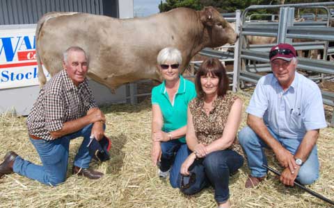 Tarlina Bull Sells To WA (Courtesy Farm Weekly 26/3/09))South Australian Murray Grey genetics are headed to WA in the near future after Monterey stud principals Gary & Julie Buller, Karridale invested in a new sire at the recent Tarlina Murray Grey sale in Port Lincoln. ![]() With the $9500 bull heading to WA are Tarlina stud principals Rodney (left) and Ruth Gregurke Port Lincoln, SA and buyers Monterey stud principals Julie and Gary Buller, Karridale WA. |