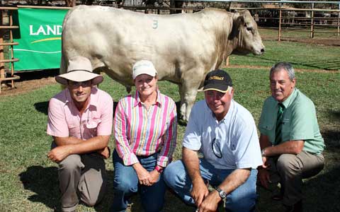 The 800kg silver bull was by Monterey Megaman Z76 and had EBVs of +4.5 for birthweight, +8 for milk, +27, +48 and +77 for 200, 400 and 600 day weight, +42 for carcase weight, +1.9 for EMA, +1.3 for retail beef yield and +0.1 for IMF.